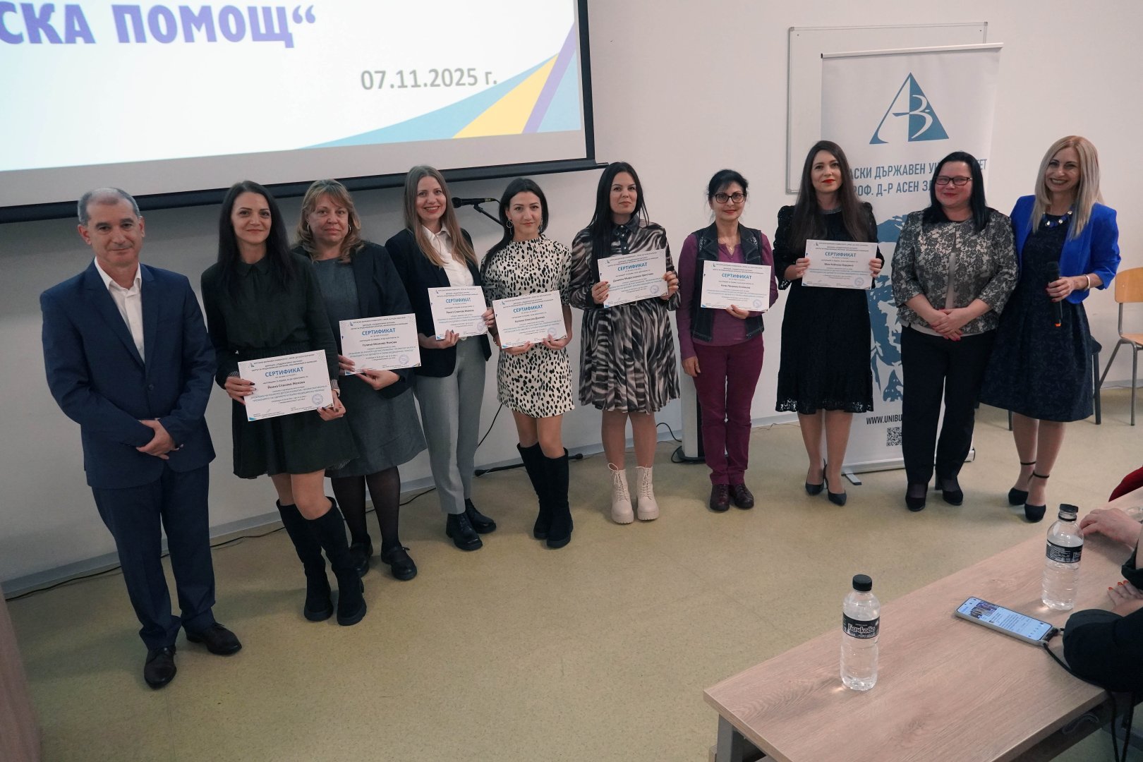 В Бургаския държавен университет „Проф. д-р Асен Златаров“ се връчиха сертификатите на 62-ма педагози от детски градини в Бургас, които успешно преминаха обучение „Проблеми на ранното детско развитие, профилактиката и промоцията на здравето и първа медицинска помощ“.