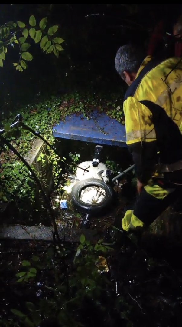 Едва след като се съобщава, че на място има полиция, реакцията се променя. Изпратена е пожарна. Кучето е извадено от шахтата.