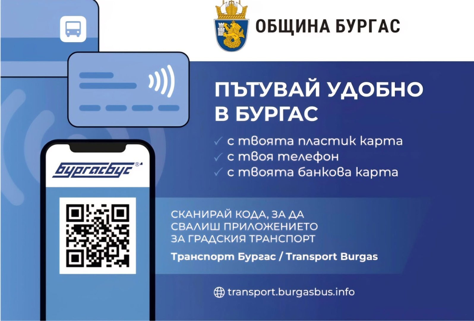 Кметът на Бургас обяви, че от 8 декември пътниците ще могат да купуват билет директно с дебитна или кредитна карта в автобусите на градския транспорт. Валидирането ще става чрез същите устройства, които се използват за пластик картите на „Бургасбус“, разположени до втората врата. Системата покрива всички стандарти за сигурност и улеснява пътуващите.
