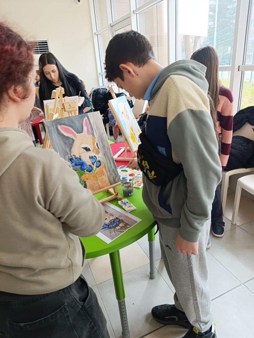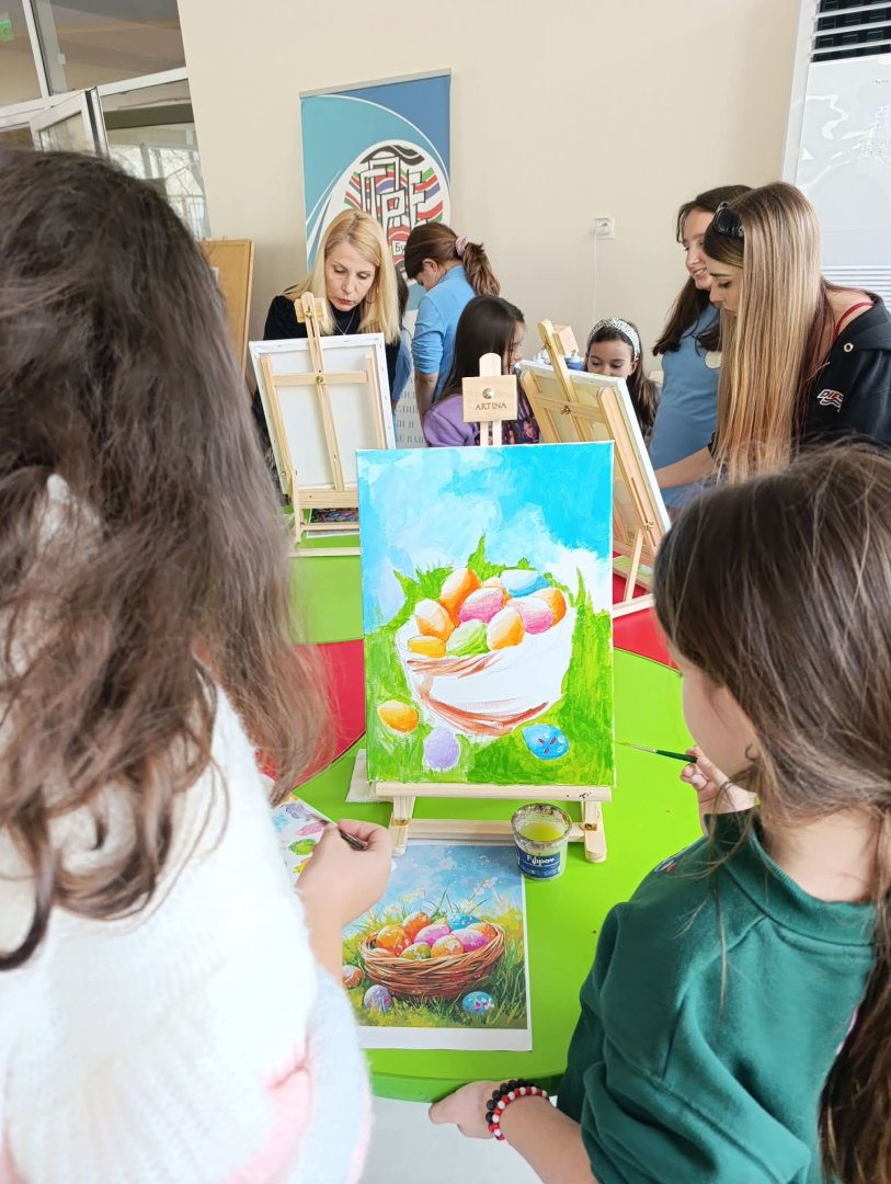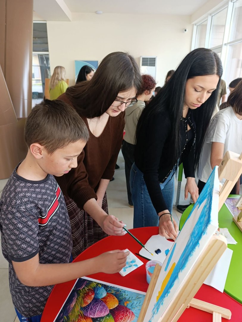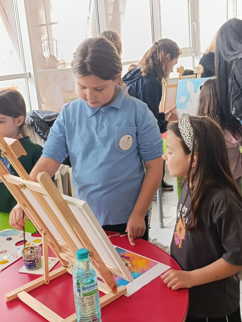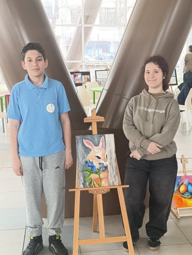Нямаше съревнование. Имаше концентрация, усмивки и онзи тих ентусиазъм, който не се играе. Децата рисуваха Великден така, както го усещат – цветно, топло, истинско. До тях ученици и студенти помагаха, насочваха, показваха. Получи се жива връзка между поколенията, не по учебник, а в действие.