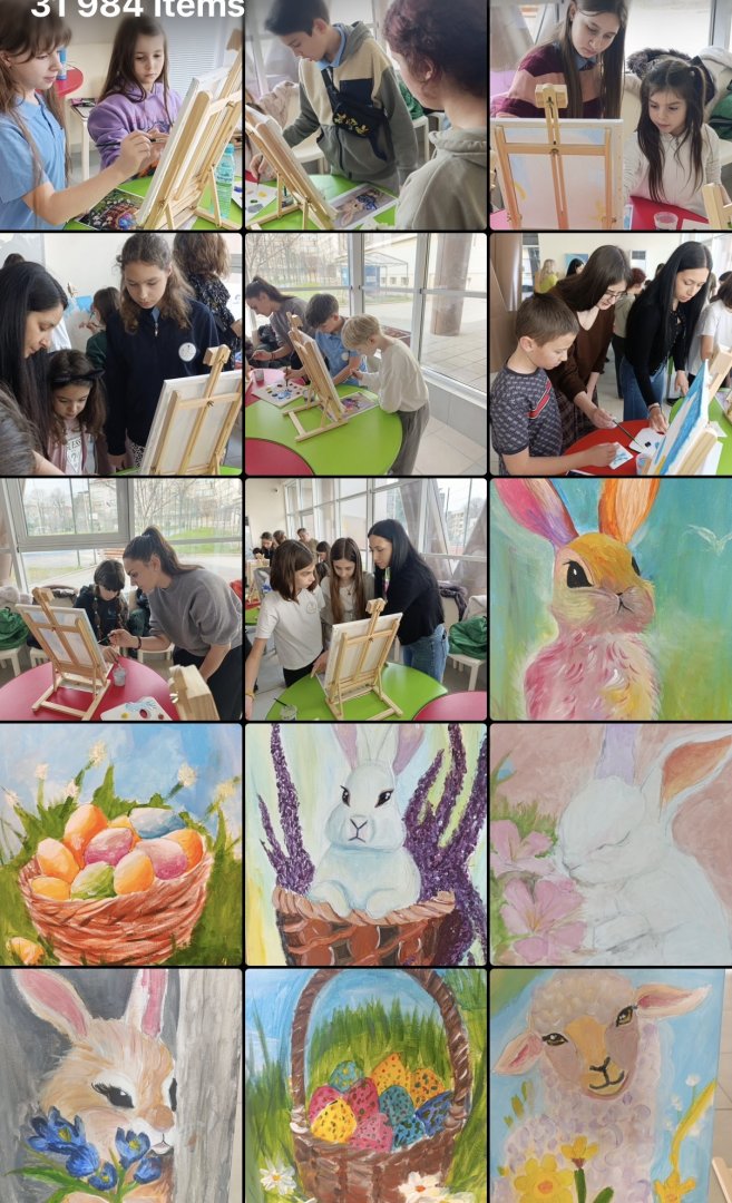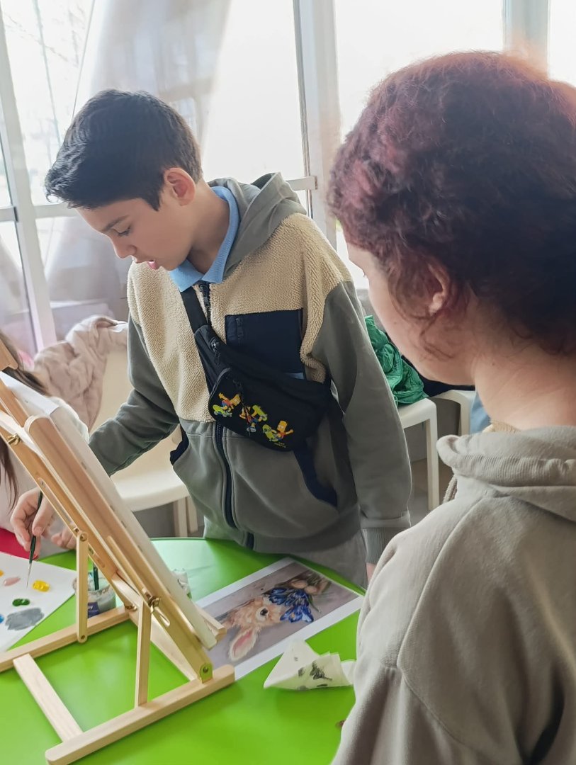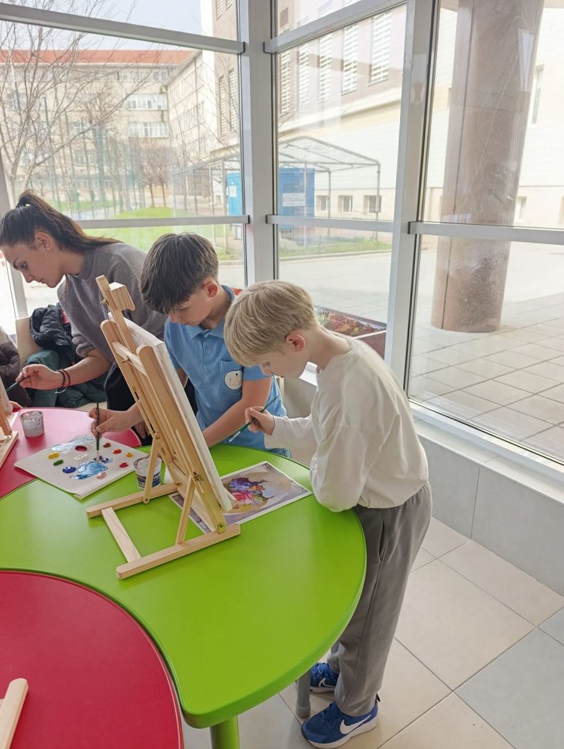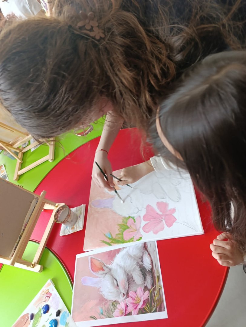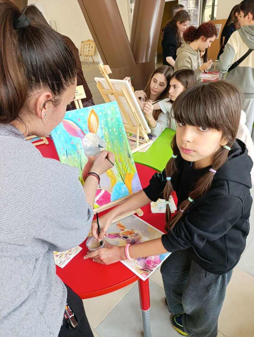 Нямаше съревнование. Имаше концентрация, усмивки и онзи тих ентусиазъм, който не се играе. Децата рисуваха Великден така, както го усещат – цветно, топло, истинско. До тях ученици и студенти помагаха, насочваха, показваха. Получи се жива връзка между поколенията, не по учебник, а в действие.