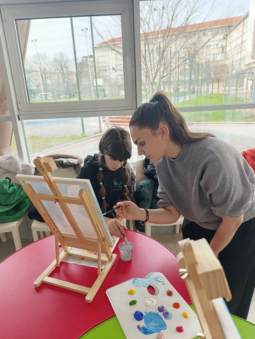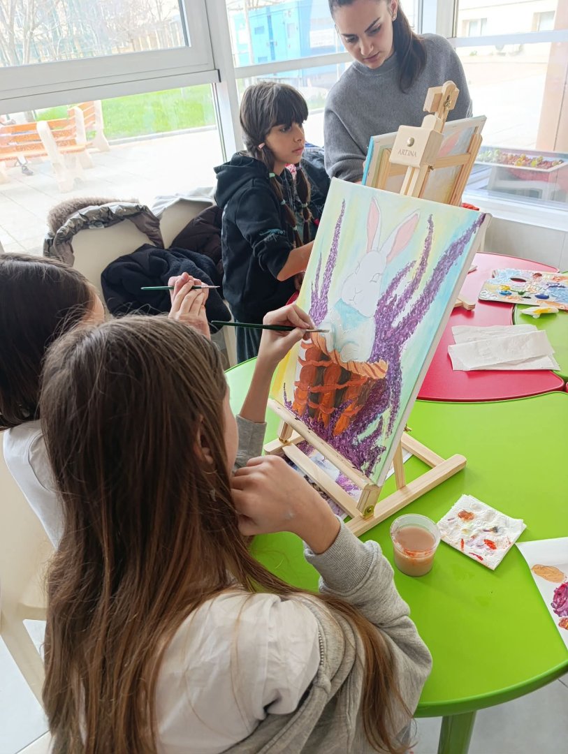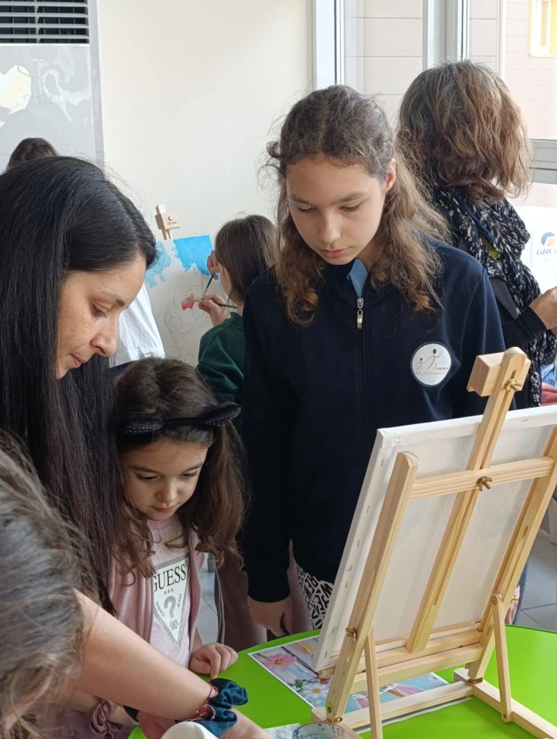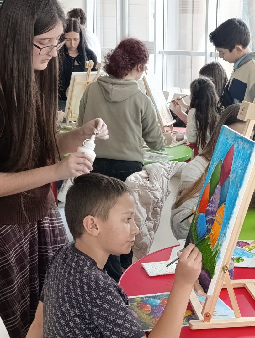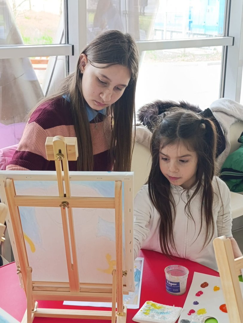 Нямаше съревнование. Имаше концентрация, усмивки и онзи тих ентусиазъм, който не се играе. Децата рисуваха Великден така, както го усещат – цветно, топло, истинско. До тях ученици и студенти помагаха, насочваха, показваха. Получи се жива връзка между поколенията, не по учебник, а в действие.