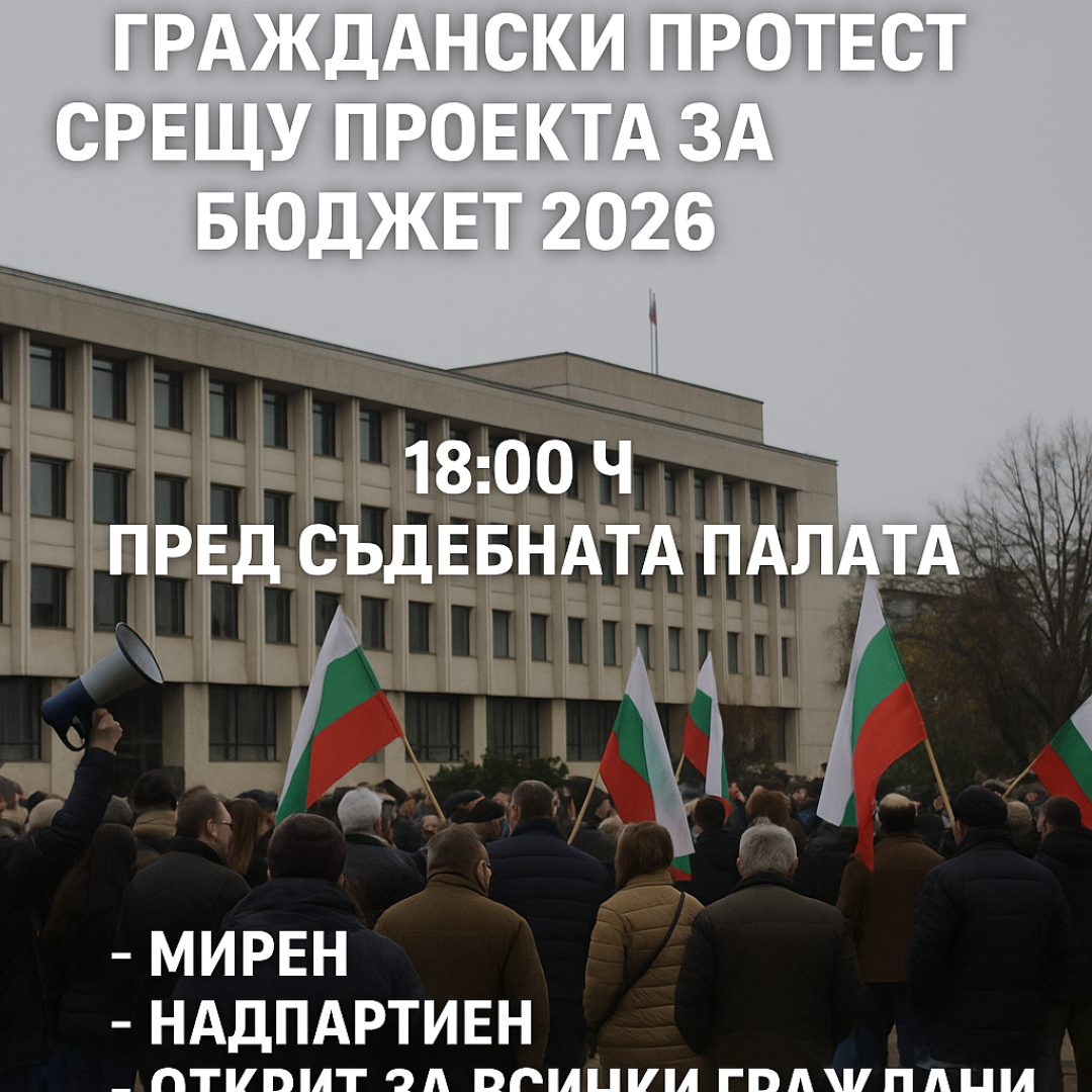 Бургас се включва в националната вълна на недоволство срещу проекта за Бюджет 2026. Днес от 18:00 часа, пред Съдебната палата на площад „Тройката“, бургазлии излизат на граждански протест, който не е организиран от политическа сила и няма партийни знамена зад себе си.