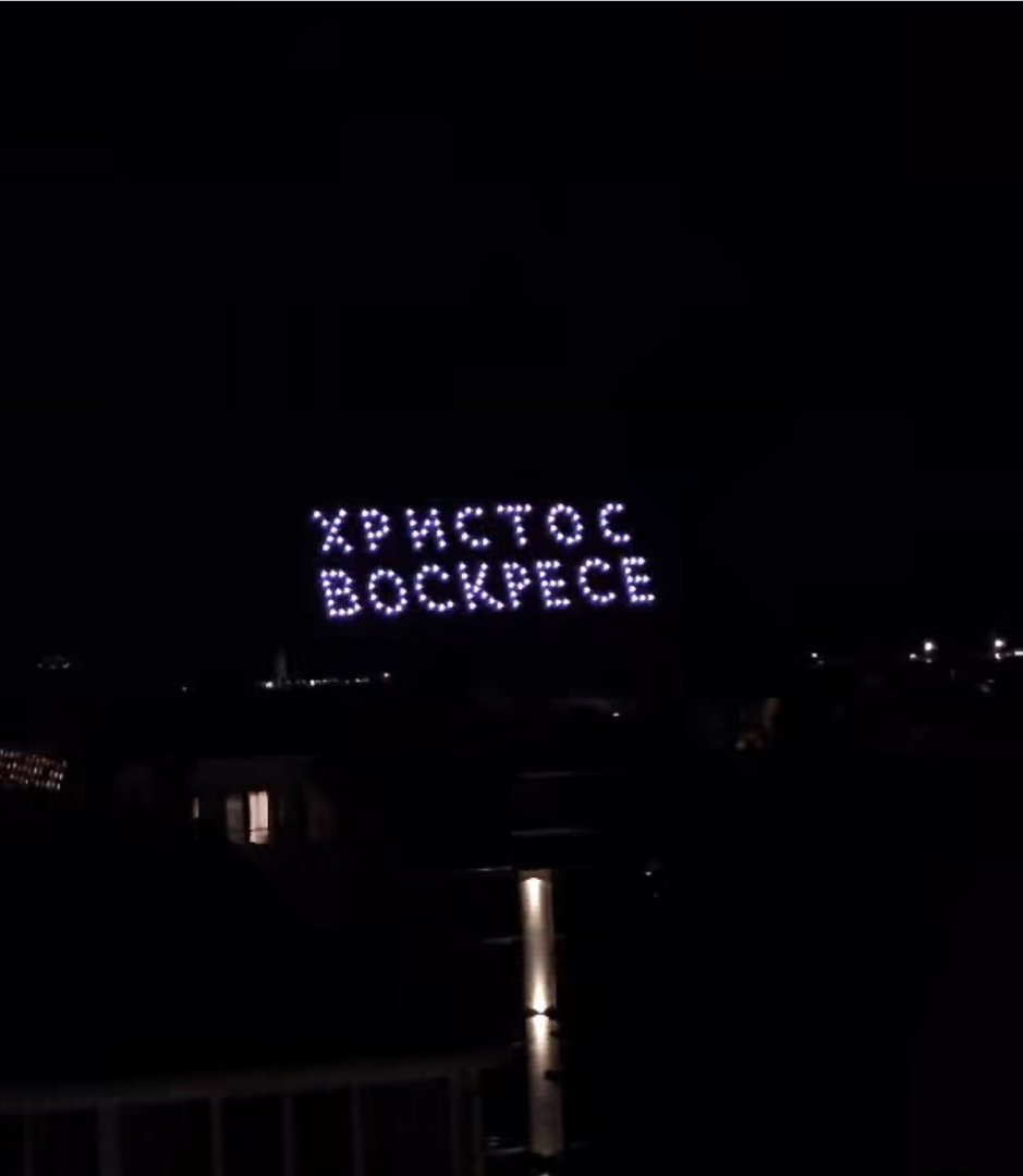 Тази година обаче най-силният момент дойде от небето. Десетки светещи дронове се издигнаха над площада и оформиха надписа „Христос Воскресе“, видим от целия център.
