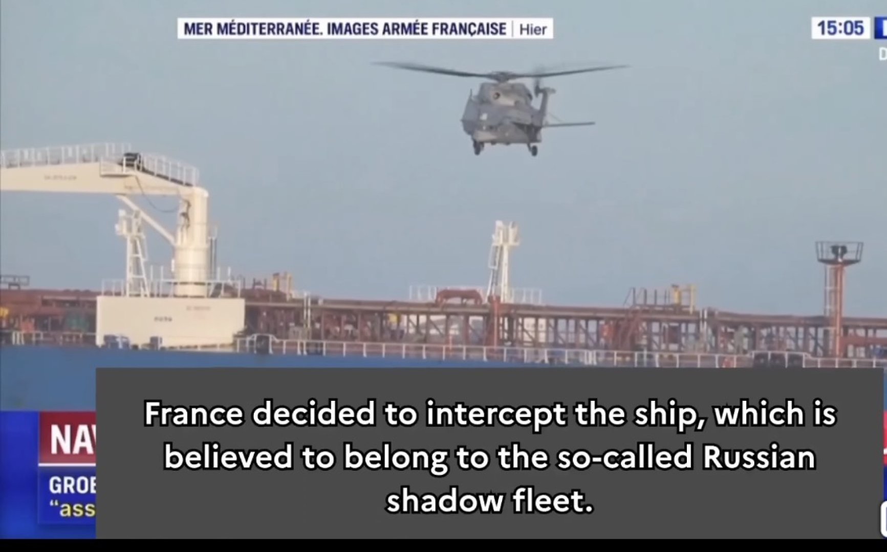 В Средиземно море вече не се разиграват само учения и рутинни патрули. Там вече се качват въоръжени военни на търговски кораби. Френските военноморски сили публикуваха видео от операцията по превземането на петролния танкер Grinch – кораб, тръгнал от Мурманск, Русия, който бе спрян край испанския бряг близо до Алмерия и принудително отклонен към Марсилия под военен ескорт.