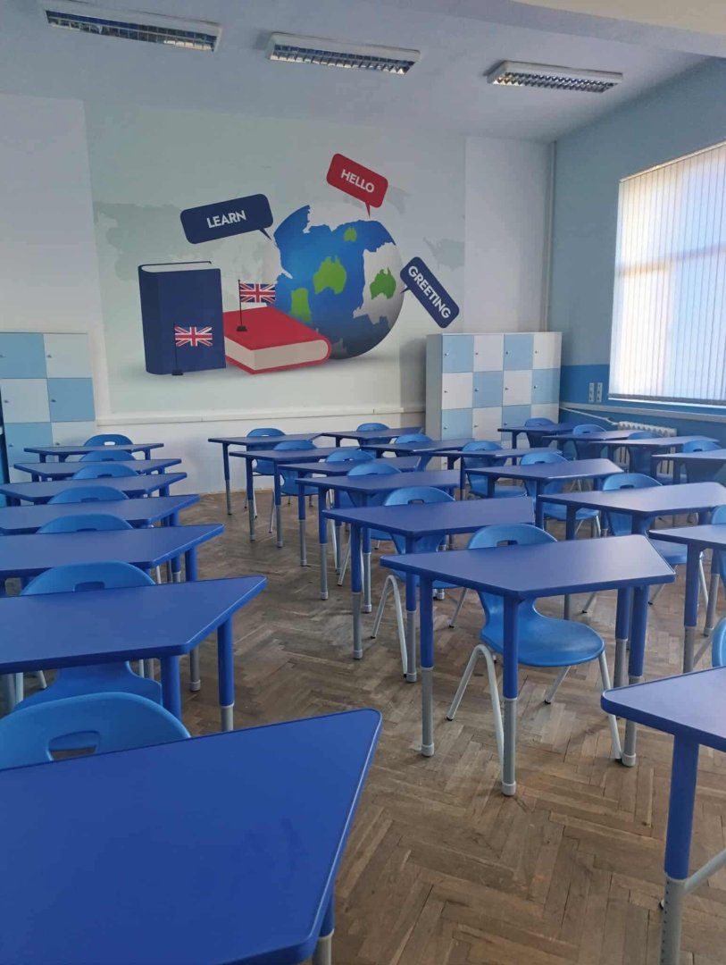 Една от учебните стаи на ОУ „П. Р. Славейков“ днес изглежда така, както допреди години изглеждаха само класни стаи от рекламни брошури и западни примери – светла, подредена, модерна и функционална. Среда, в която ученето започва с усещане за ред и уважение, а не с примирение.