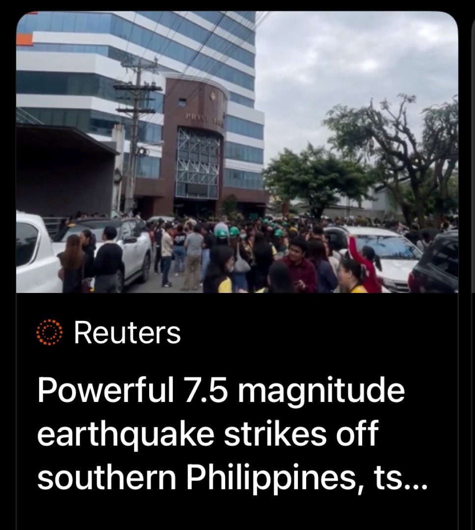 Снощи мощен трус с магнитуд 7,4 по скалата на Рихтер разлюля южната част на Филипините. Земетресението е регистрирано край брега на провинция Давао Ориентал, на остров Минданао, около 21:45 местно време (15:45 българско).