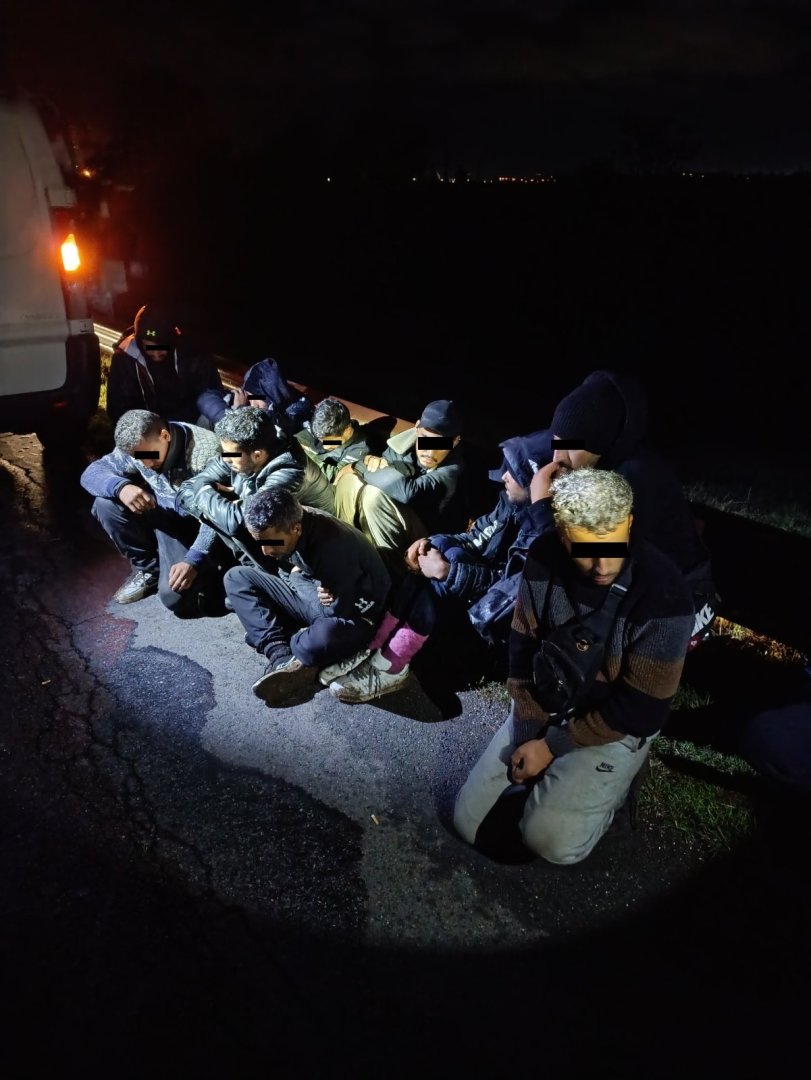 Малко след това полицейските служители забелязват на около 100 метра по-напред спрял товарен микробус „Peugeot Expert“, също с френска регистрация, и включени аварийни светлини. В шофьорската кабина нямало никого, но при проверка на багажното отделение са открити 11 мъже – незаконни мигранти, представили се като граждани на Мароко на възраст между 25 и 37 години. Всички са задържани за 24 часа.