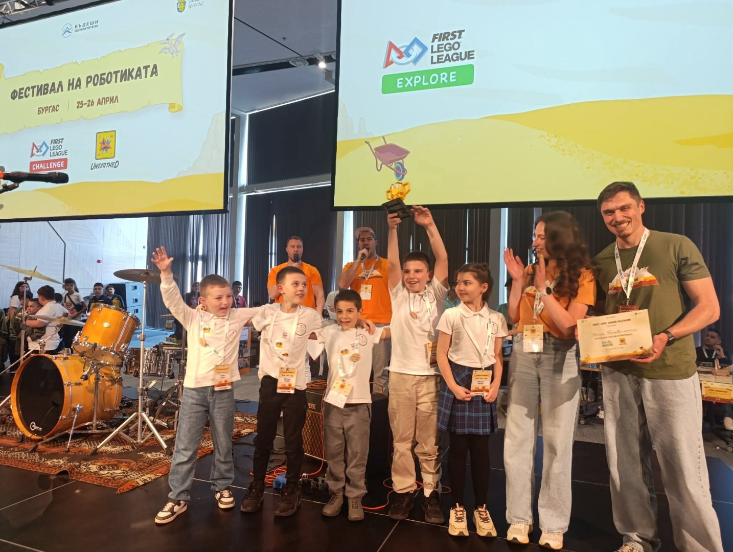 Ученици от втори клас на ОУ „П. Р. Славейков“ постигнаха резултат, който рядко се вижда на това ниво. Те спечелиха първо място в категория „Екипен постер“ на международното състезание First Lego League, в конкуренция с 16 отбора.