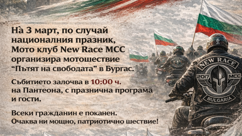 New Race MCC организира мотошествие „Пътят на свободата“ за 3 март в Бургас